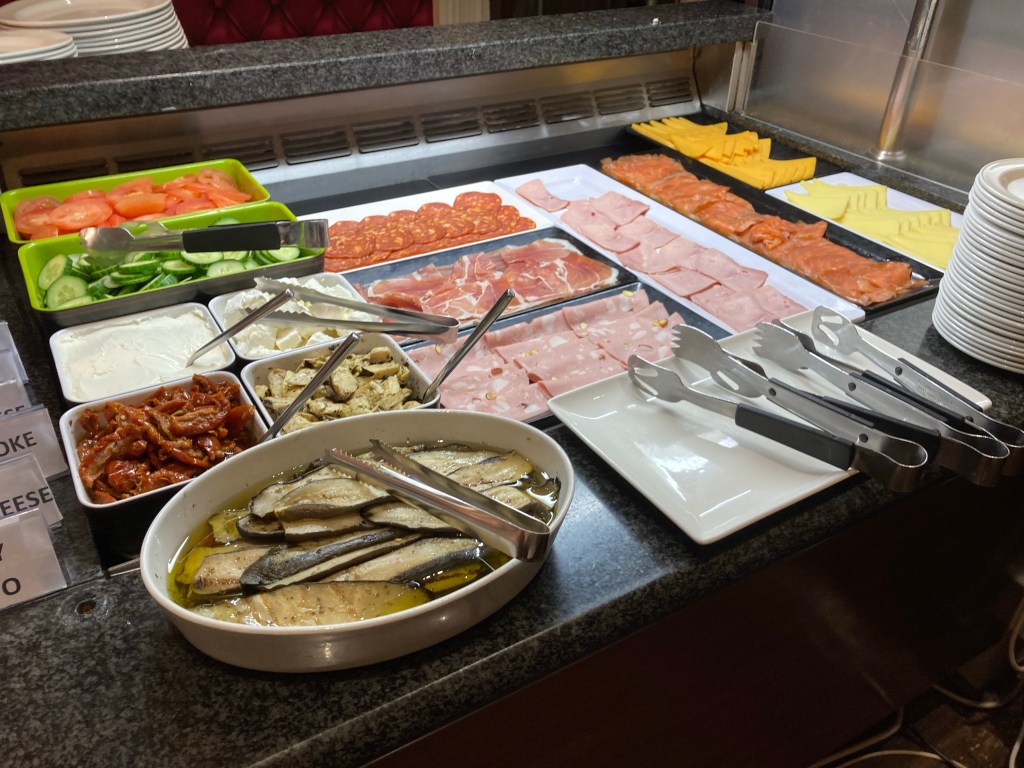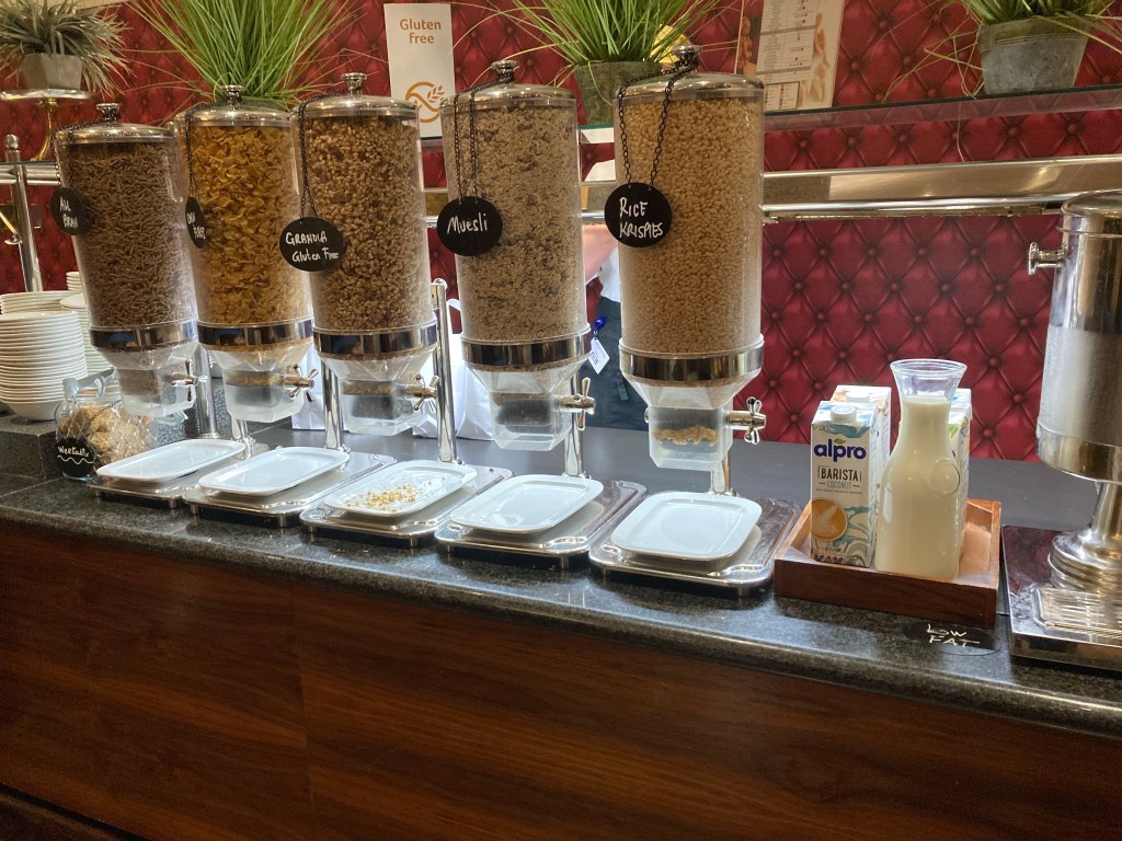 Breakfast at hotel started out perfect – made a latte at the self serve espresso machine, had porridge with nuts, raisins and oat milk. Then I decided to ask if they had any veggie sausages. Sure, how many, I said one. Oops
